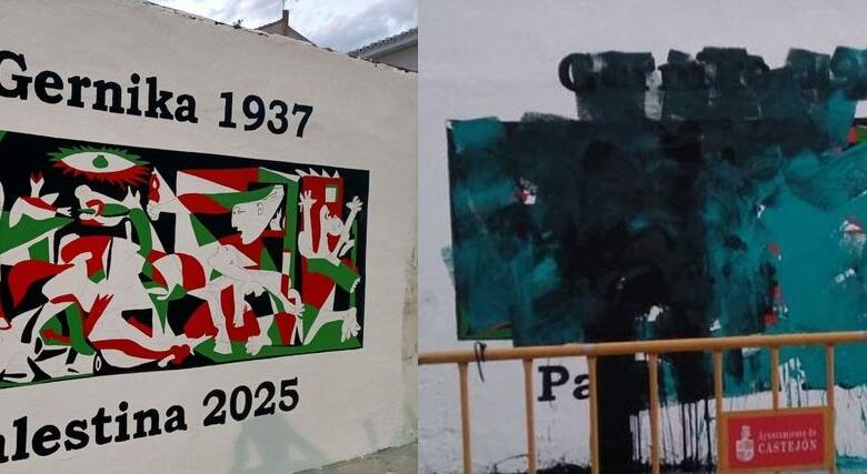 El dirigente de IU Navarra ha recordado que la elaboración de ese mural se enmarca en la exitosa marcha solidaria “Ibaitik Itsasora” que está uniendo el rio Ebro a su paso por Tudela con el mar en Hendaia. “Con motivo de la celebración de esta marcha solidaria con el pueblo palestino, que durante los días pasados ha recorrido nuestra comunidad de sur a norte, la comisión local del municipio de Castejón de esta iniciativa solidaria pintó un mural artístico en un emplazamiento céntrico de la localidad. El mural consistía en una bella alegoría del Guernica de Picasso en defensa del pueblo palestino, en la que se incluía también la leyenda “Gernika 1937 – Palestina 2025”. Frente al odio irracional, destacamos la participación de miles y miles de ciudadanos y ciudadanas en las distintas etapas de esta marcha”, ha indicado Carlos Guzmán.